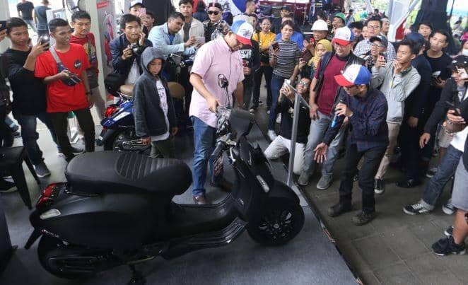 6. Anies Baswedan dengan detail memerhatikan varian terbaru, Vespa Sprint Notte limited edition