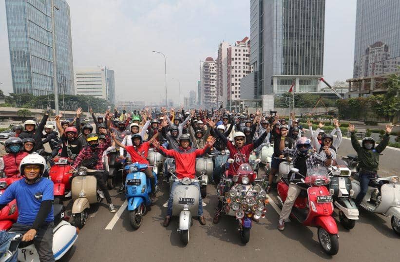 3. Dua ribu pengendara Vespa berbaur saat konvoi keliling Jakarta