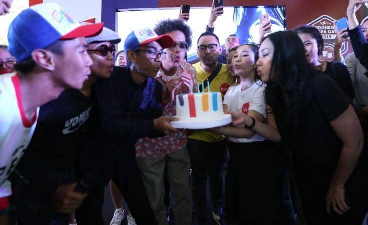4. Inisiator Indonesia Vespa Day bersama-sama meniup lilin ulang tahun Vespa yang ke-73