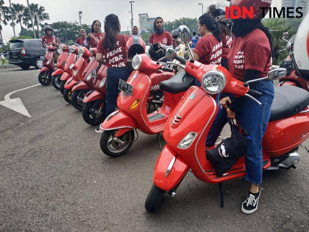 Jakarta, IDN Times - Dalam rangka perayaan hari ulang tahun Vespa yang ke-73, komunitas Vespa menggelar acara bertajuk "Indonesia Vespa Days 2019". Acara tersebut dimulai dengan sunday morning ride yang diikuti dua ribu-an peserta yang berkonvoi keliling Jakarta pada Minggu (29/4).
