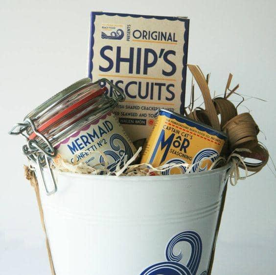 2. Kalau ingin membuat parsel bertema rustik, kamu bisa gunakan ember kayu berikut ini. Selain itu, isian jerami dan bunga kering juga akan menguatkan nuansanya