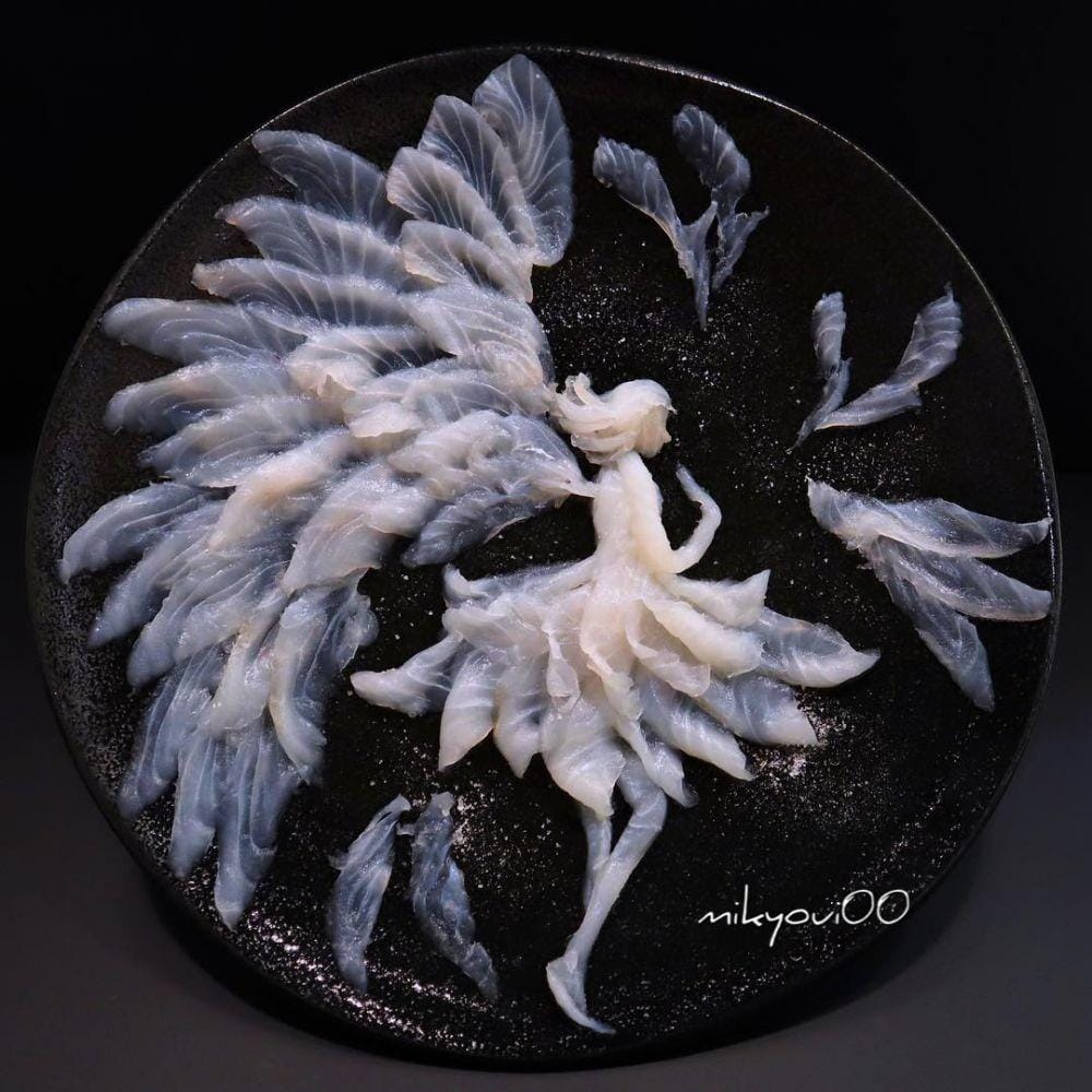 Berkonsep out of the box, seorang pengguna Instagram asal Jepang dengan nama @mikyoui00 justru berhasil menciptakan karya indah dari potongan ikan. Foto yang ia unggah dalam akunnya kemudian viral dan mengundang decak kagum.