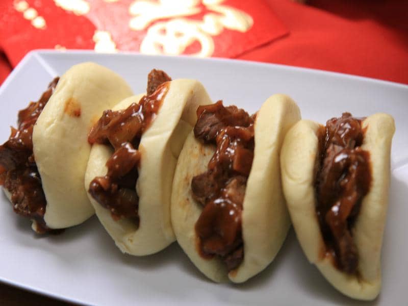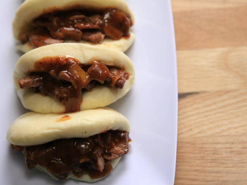 5. Siapkan bakpao, masukkan daging dan beri saus di atasnya. Sajikan.