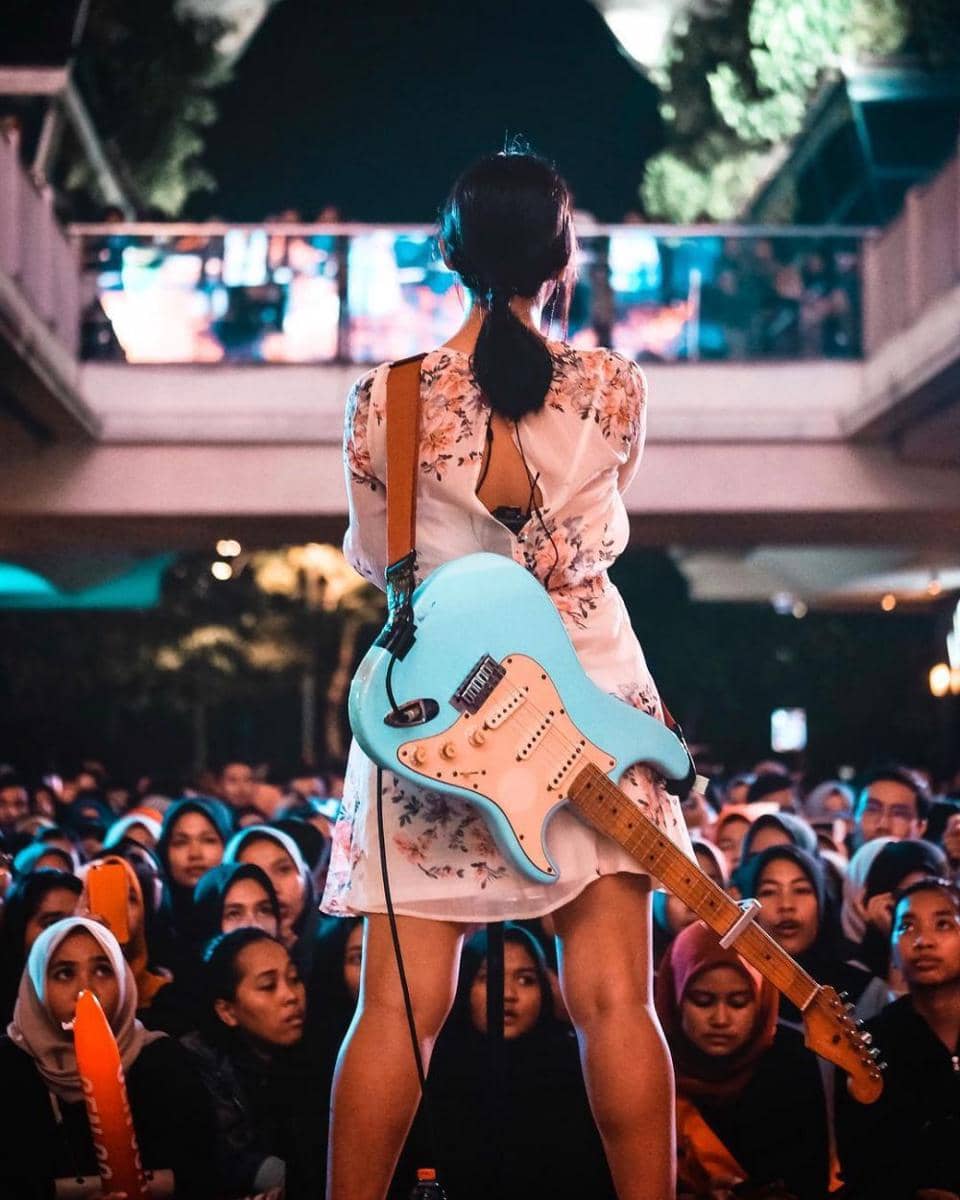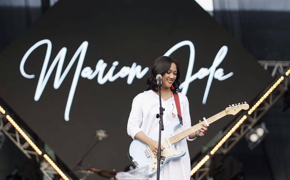 2. Ini saat pertama kali Marion Jola tampil di atas panggung memainkan gitar