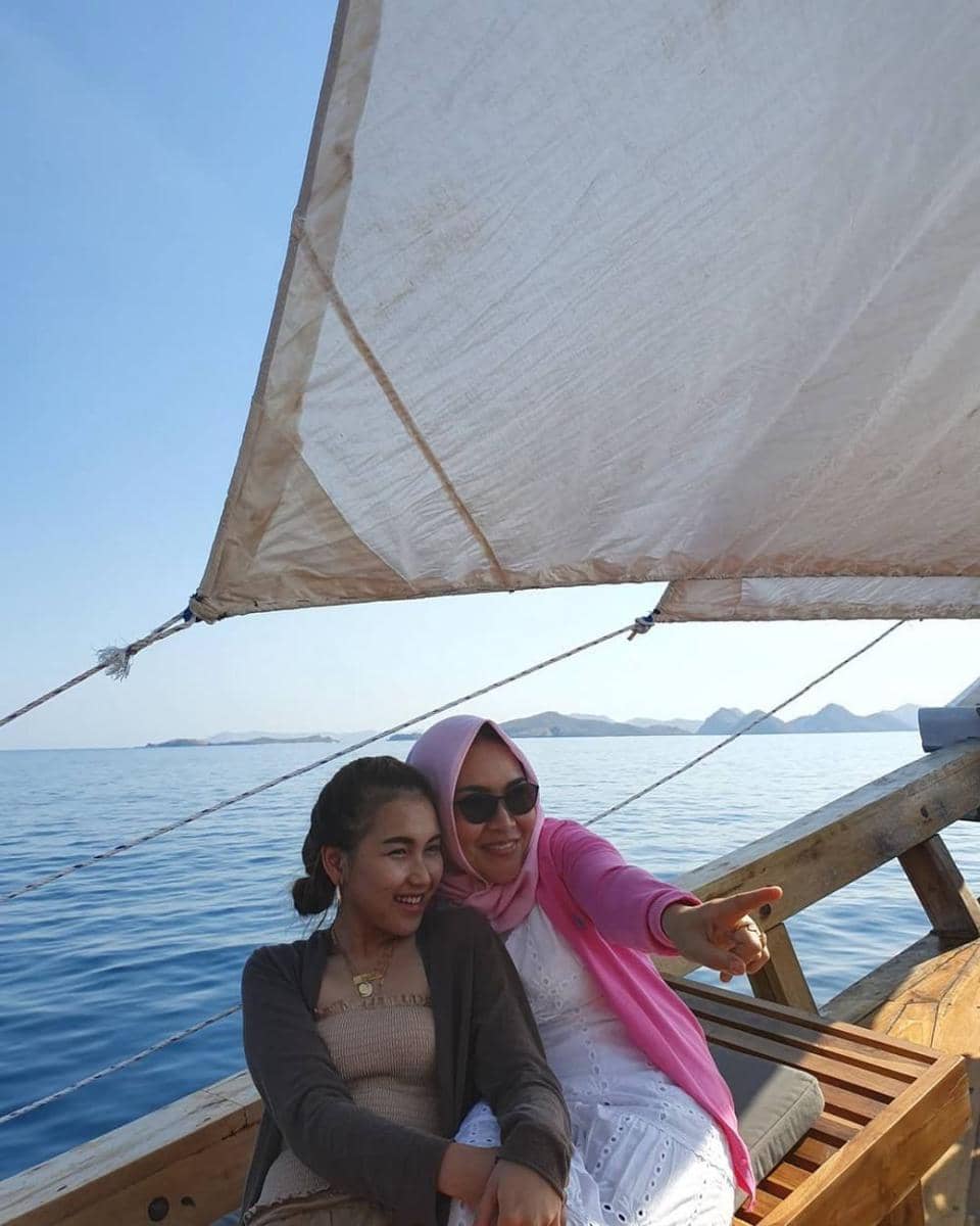 7. Begini potret manis Ayu dan sang ibu saat liburan dengan berlayar di kapal pinisi