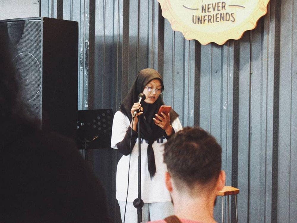 - Kalau lagi ada yang perform, gak boleh berisik karena kami benar-benar ingin mengapresiasi performer. Kalau memang ada yang setuju dengan puisinya, kami biasanya menggunakan finger snap.