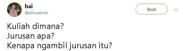 7. Waduh, gak cuma kenapa ambil jurusan aja ya. Kuliah belum selesai pun ditanyain, gimana sudah siapkan jawabanya belum nih kamu yang sedang pejuang skripsi?
