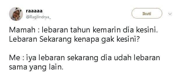 3. Nah, buat kamu yang tahun ini gak Lebaran lagi sama si dia, pasti ada aja deh yang nanya. Jawab aja dengan ikhlas ya, move on!