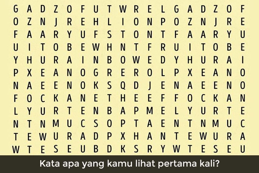 Coba perhatikan gambar di bawah ini! Kamu hanya perlu menemukan satu kata di dalamnya. Dan kata yang kamu temukan itu bisa tunjukkan kepribadianmu. Cek yuk!