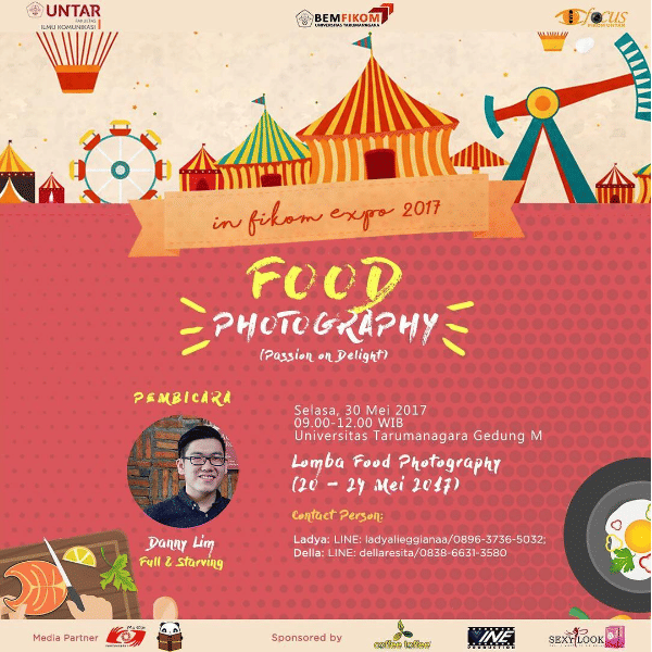 - Bidang Fotografi “Food Photography – Passion on Delight” akan menghadirkan Danny Lim dari Full & Starving.