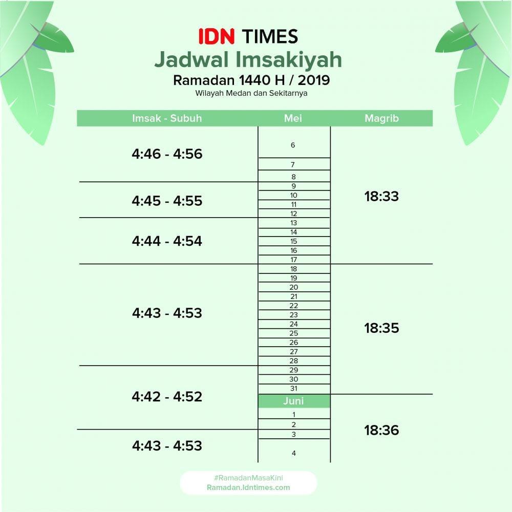 Sedang menetap di Medan selama Ramadan? Kamu harus tahu nih kalau jadwal imsak di Medan sekitar pukul 04.43 sampai 04.53.