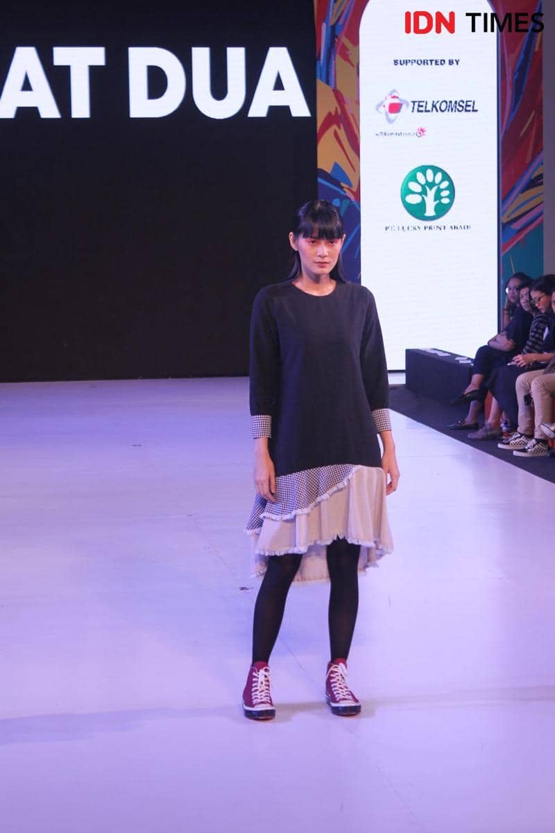 10. Aksesoris seperti bucket hat dan tas unik pun menjadi pelengkap fashion show Lekat Dua