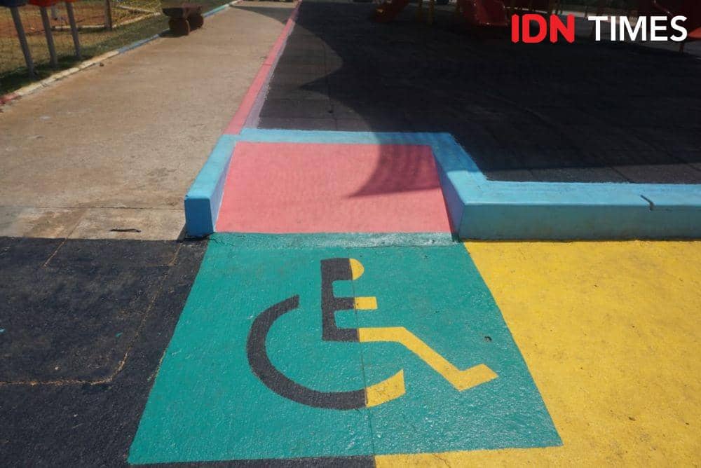 8. Jalur khusus disabilitas di RPTRAKalijodo, masih cukup terawat dibanding fasilitas lainnya. Kemungkinan karena jarang digunakan oleh penyandang disabilitas