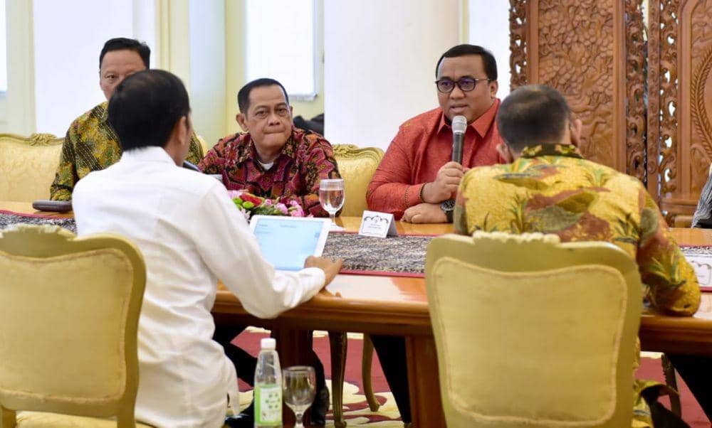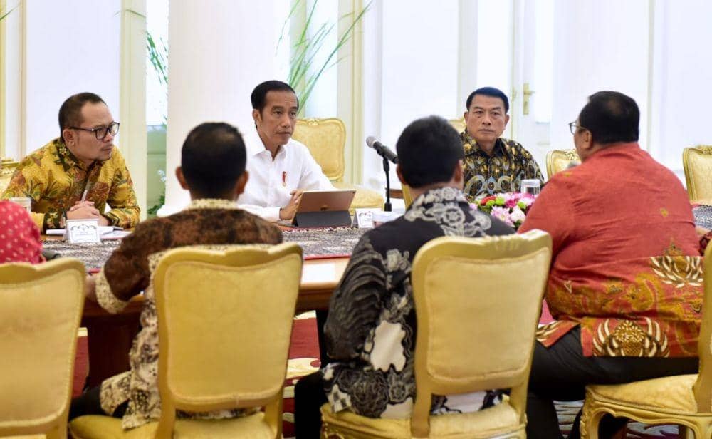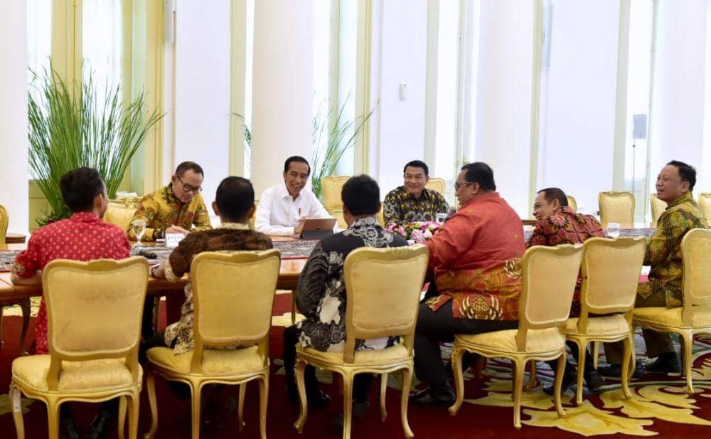 Jakarta, IDN Times - Presiden Joko 'Jokowi' Widodo menerima pimpinan serikat pekerja pada Jumat (2/4). Pertemuan berlangsung di Ruang Garuda, Istana Kepresidenan Bogor, Jawa Barat.