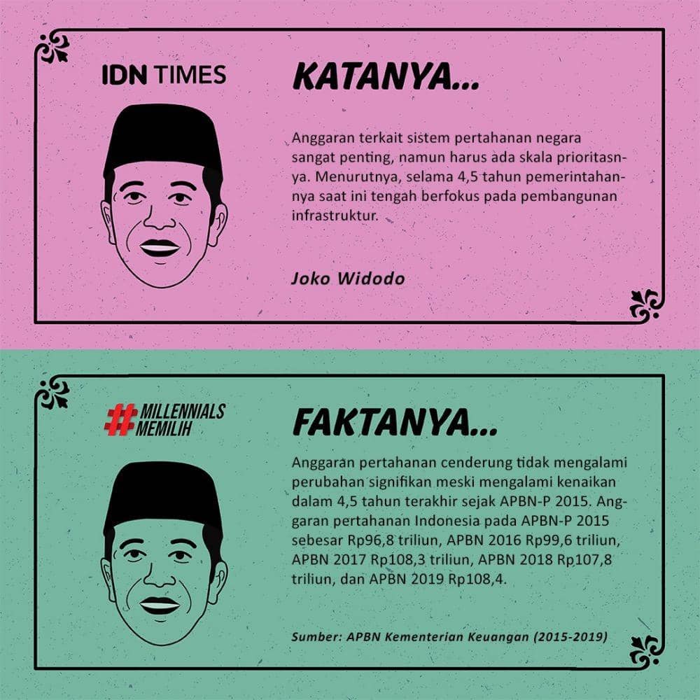 Jakarta, IDN Times - Calon presiden nomor urut 01 Joko “Jokowi” Widodo mengatakan bahwa anggaran terkait sistem pertahanan negara sangat penting namun harus ada skala prioritasnya. Menurut Jokowi, selama 4,5 tahun pemerintahannya saat ini tengah berfokus pada pembangunan infrastruktur.