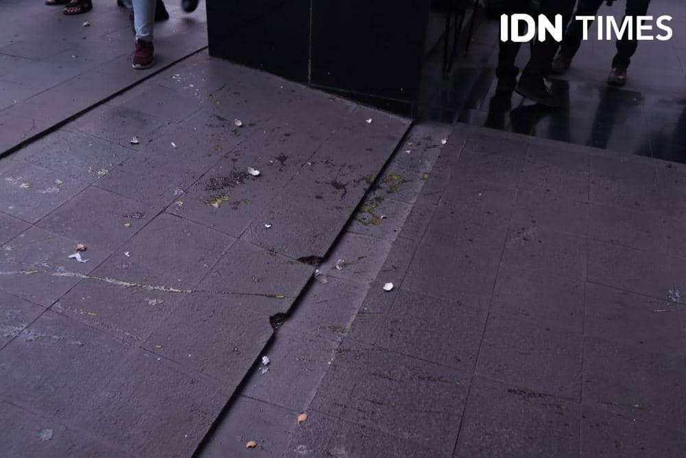 4. Jejak bekas telur pecah ditemukan di permukaan lantai di gedung KPK