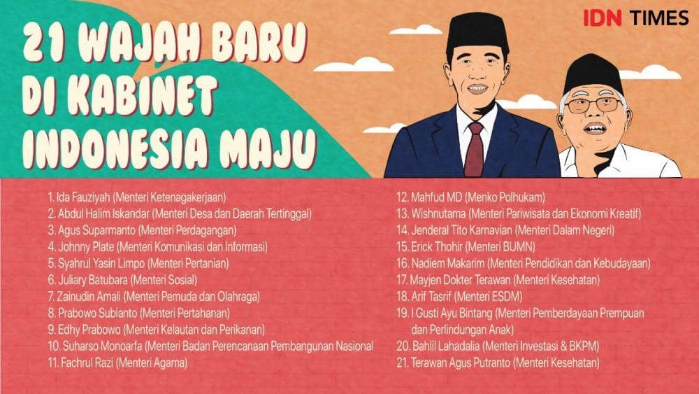 Jakarta, IDN Times - Presiden Joko "Jokowi" Widodo telah memperkenalkan sekaligus melantik 38 menteri dan pejabat setingkat menteri di Istana Negara, Jakarta, Rabu kemarin (23/10). Sebelum melantik, Jokowi memperkenalkan satu per satu menteri Kabinet Indonesia Maju di Veranda, Istana.