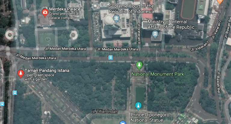 2. Tampilan dari Google Earth menunjukkan lokasi ledakan titik ledakan sangat dekat dengan Istana Negara