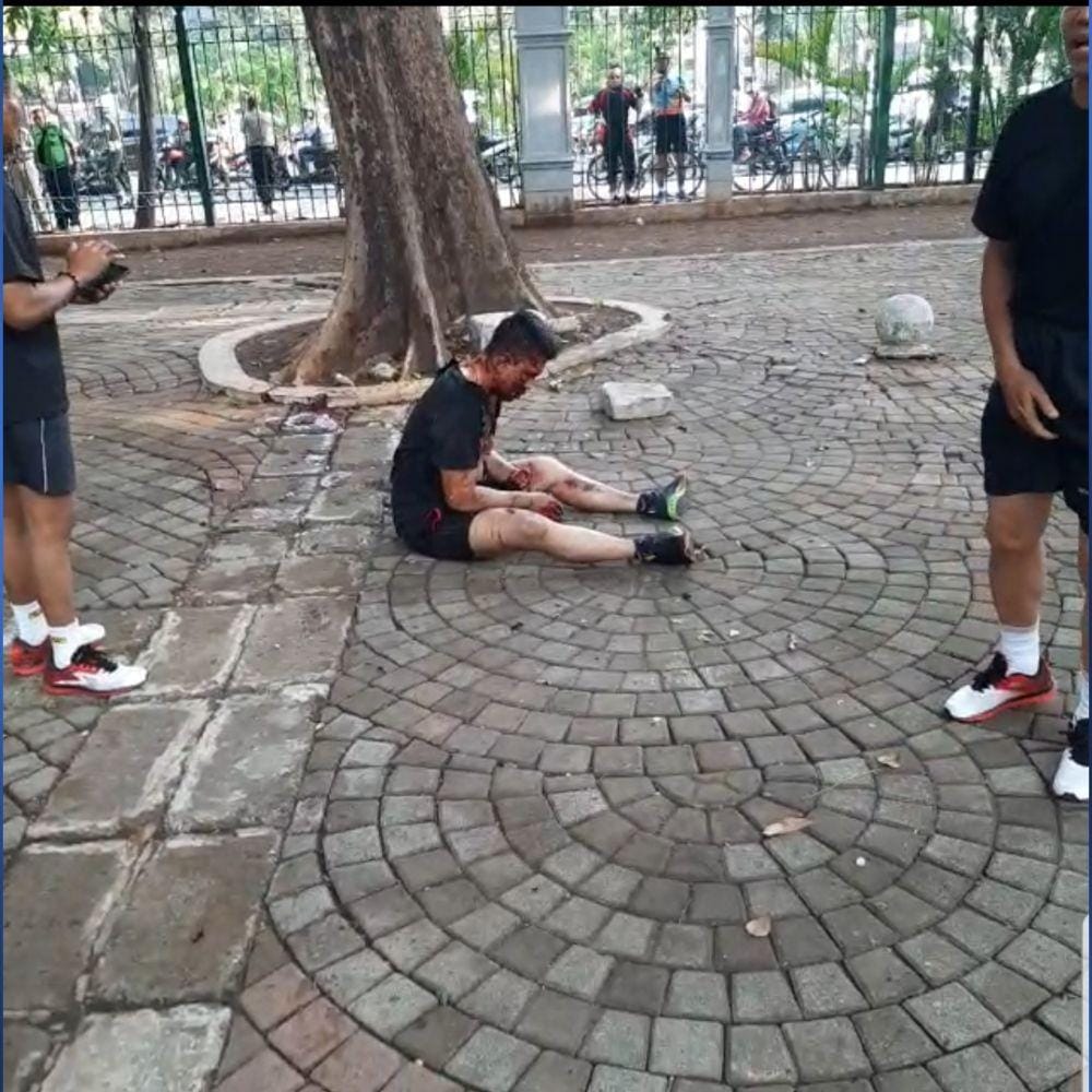 5. Dua korban ledakan granat asap kemudian dilarikan ke RSPAD Gatot Subroto