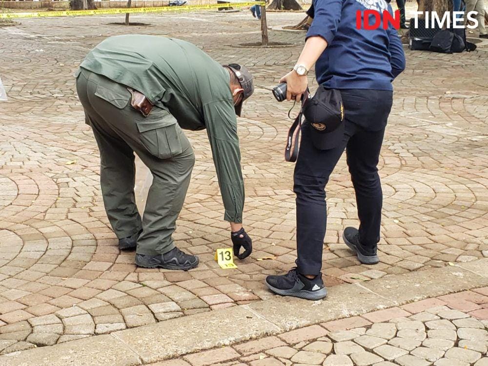 4. Polri melakukan olah TKP sebagai bagian pencarian bukti dalam peristiwa ledakan granat