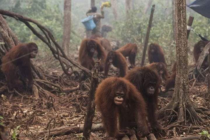 5. Akibat kebakaran hutan dan lahan pada 2015 lalu, orangutan di The Borneo Orangutan Survival Foundation (BOSF), Samboja (Kalimantan Timur) harus dievakuasi