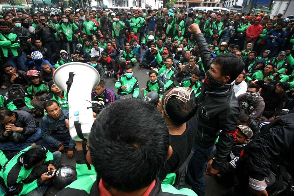Demo itu untuk memprotes sistem performa Gojek yang dinilai pengemudi tidak adil.