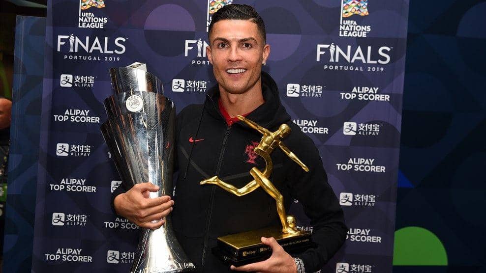 6. Ronaldo berhasil menjadi top skor di fase final UEFA Nations League berkat torehan tiga golnya ke gawang Swiss di semifinal