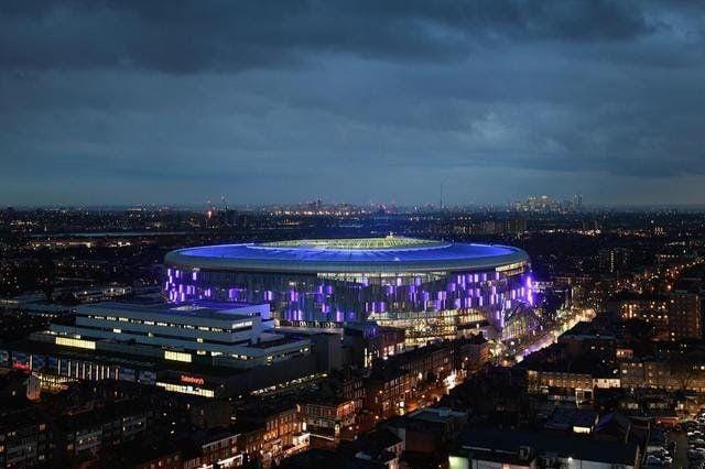 3. Di saat malam hari, Tottenham Hotspur Stadium menunjukan kemegahannya dengan gemerlap lampu LED