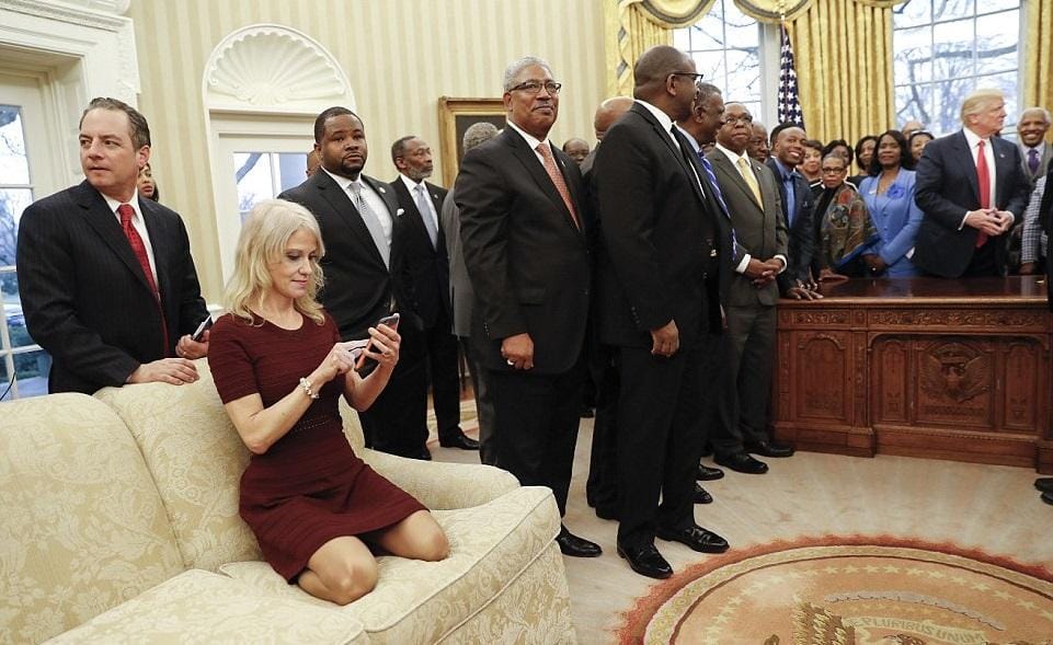 Duduk Tak Sopan, Juru Bicara Trump Jadi Bahan Gunjingan