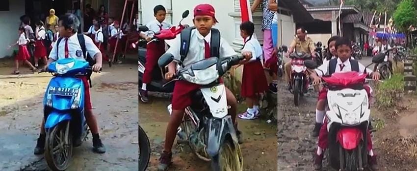 Siswa SD di Trenggalek Dibiarkan Kendarai Sepeda Motor ke Sekolah... Tanpa Helm Lagi!